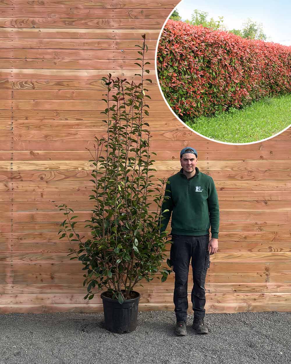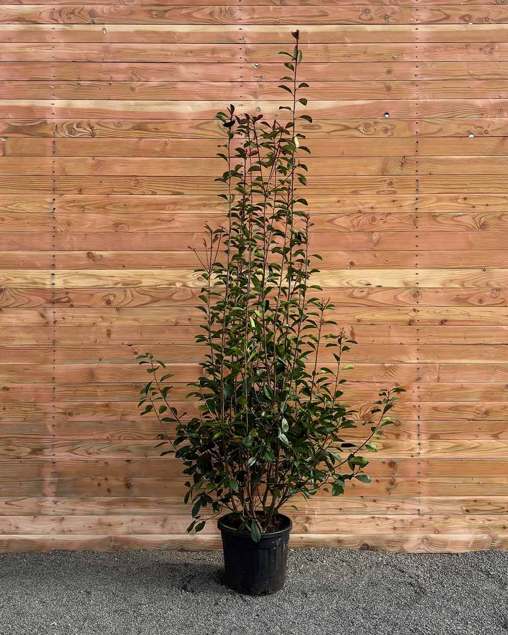 Ein sonniger bis halbschattiger Standort sorgt für leuchtend roten Neuaustrieb und dichten Wuchs. Der Boden sollte humos und gut durchlässig sein. Nach dem Pflanzen regelmäßig gießen, später nur bei längerer Trockenheit. Ein Schnitt im Frühjahr oder Spätsommer fördert eine kompakte, blickdichte Hecke.