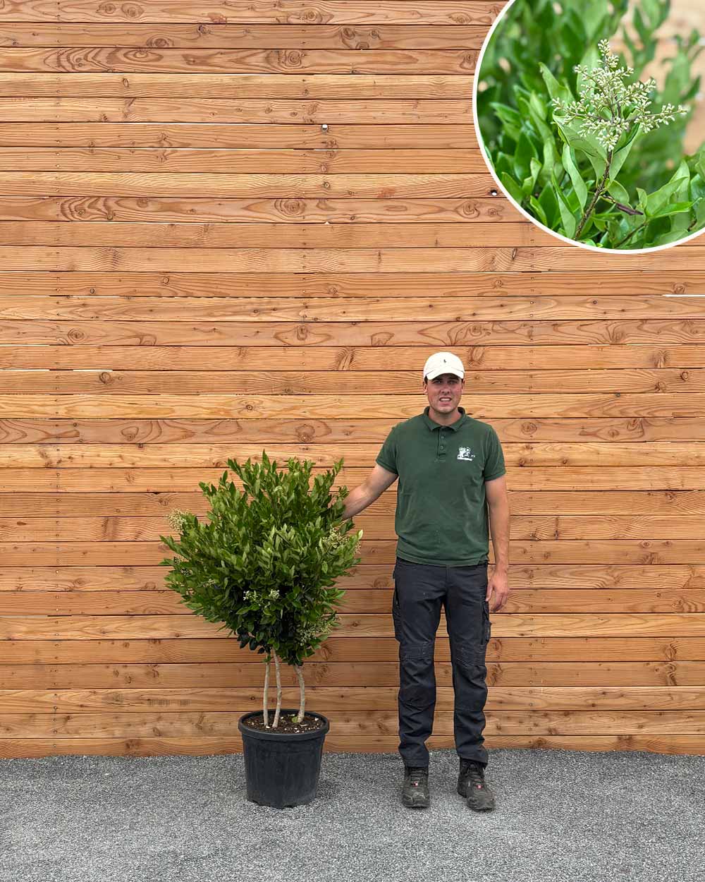 Der immergrüner Liguster „Ligustrum japonicum“ ist ein vielseitiger, dicht wachsender Strauch, der sich hervorragend als formschöner Sichtschutz oder strukturgebendes Element im Garten eignet. Mit seinem glänzenden, sattgrünen Laub bleibt er das ganze Jahr über attraktiv und sorgt selbst im Winter für lebendiges Grün. Der Liguster ist robust, schnittverträglich und wächst zügig – ideal für Hecken, Spaliere oder als Solitär im großen Kübel. Dank seiner guten Schnittverträglichkeit lässt sich die Pflanze in viele Formen bringen und bleibt dennoch pflegeleicht. Diese Sorte ist winterhart, hitzeverträglich und kommt auch mit städtischem Klima gut zurecht – perfekt für moderne Gärten, Terrassen und urbane Begrünungskonzepte.